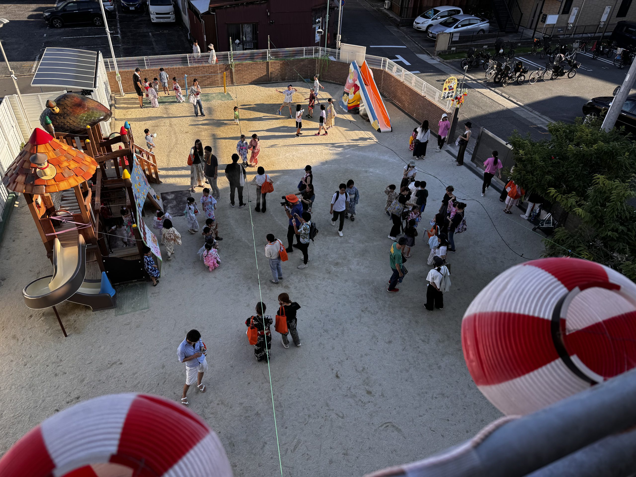 午後は全クラスの園児でなつまつりを楽しみました。お面やポップコーン、ビニールヨーヨーなどの出店があり、小さい子から卒園した小学生までたくさんのお子さんが参加してくれました。久しぶりにコロナ前の賑やかななつまつりの雰囲気を味わえるイベントとなりました。