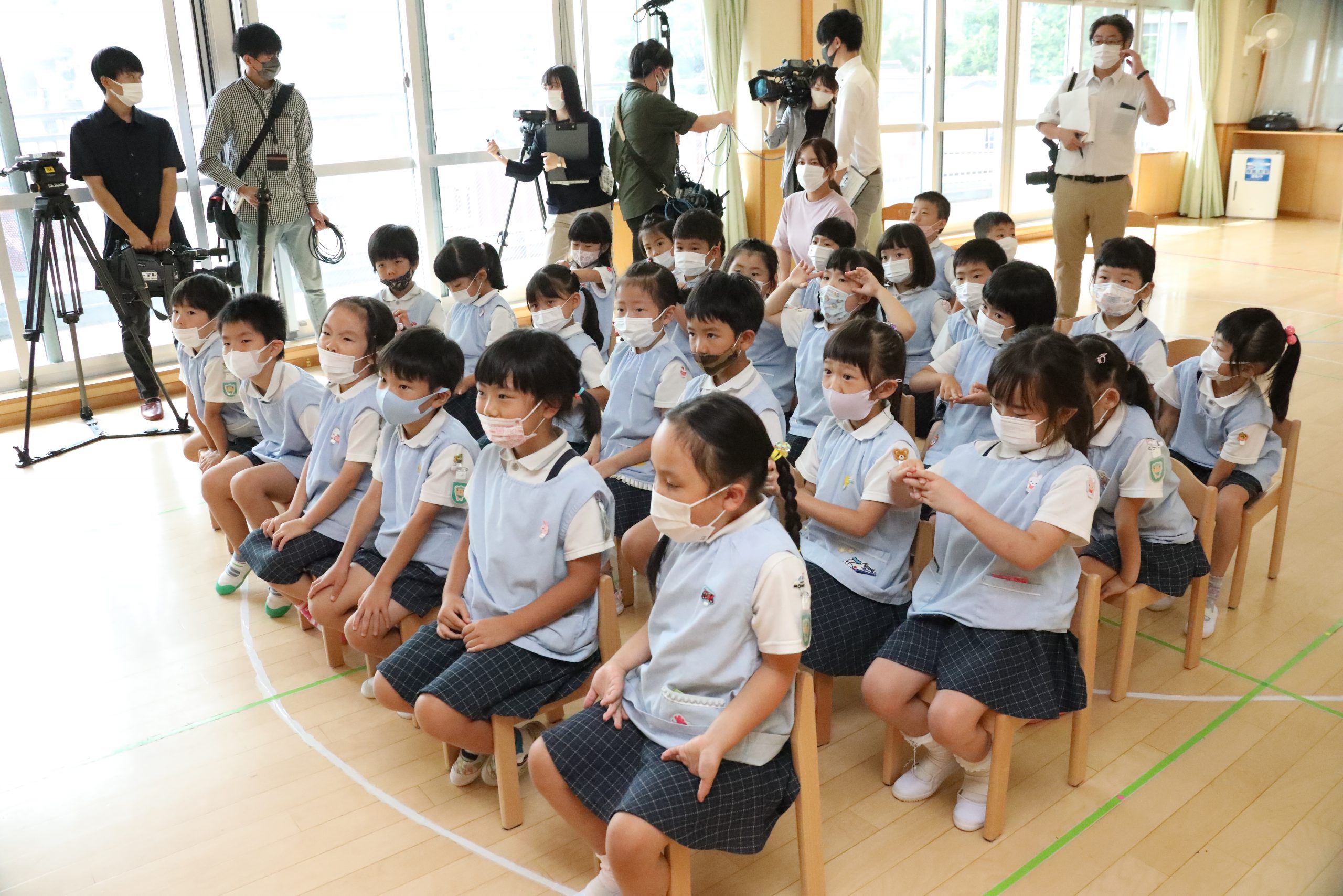 本日、午前中に年長組がテレビ局と新聞社の取材を受けました。愛知県警による不審者連れ去り防止運動の一環がテーマです。