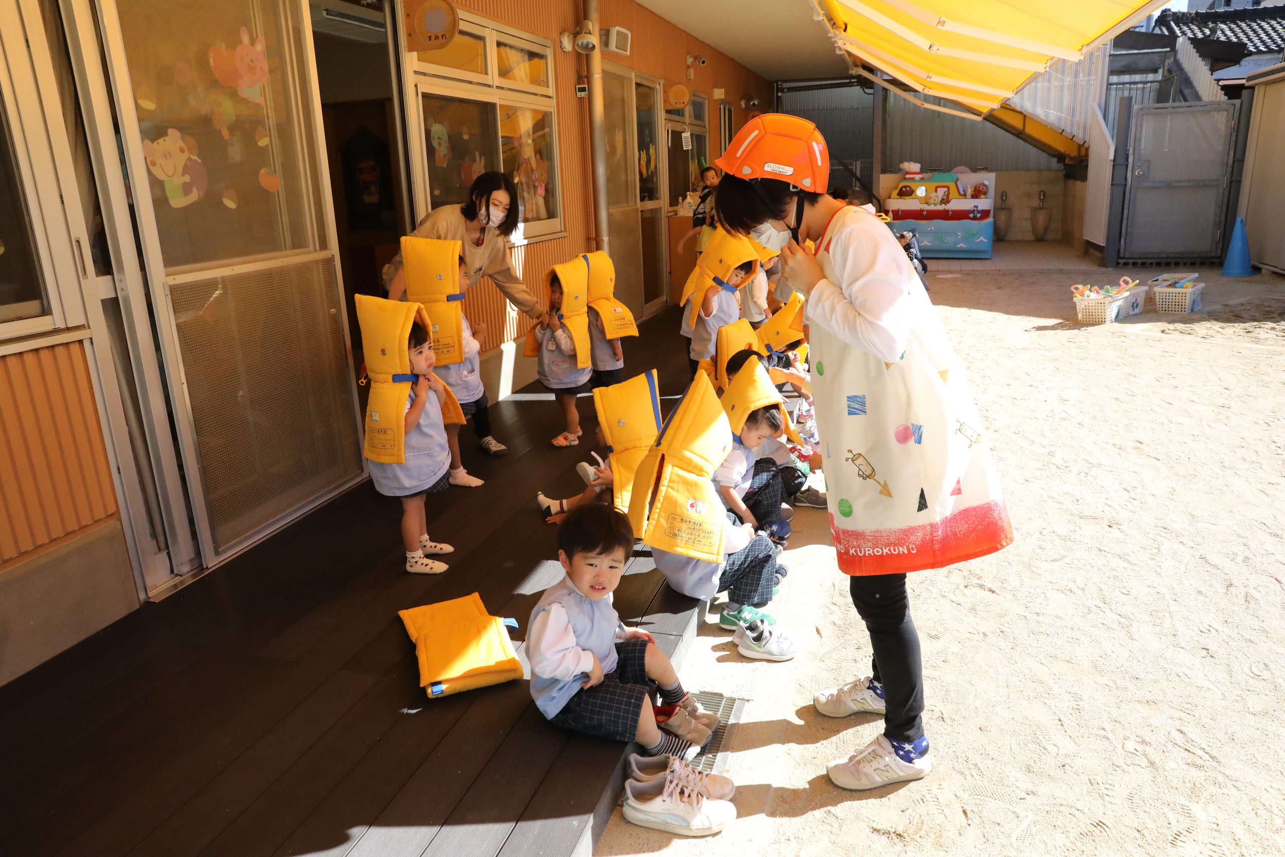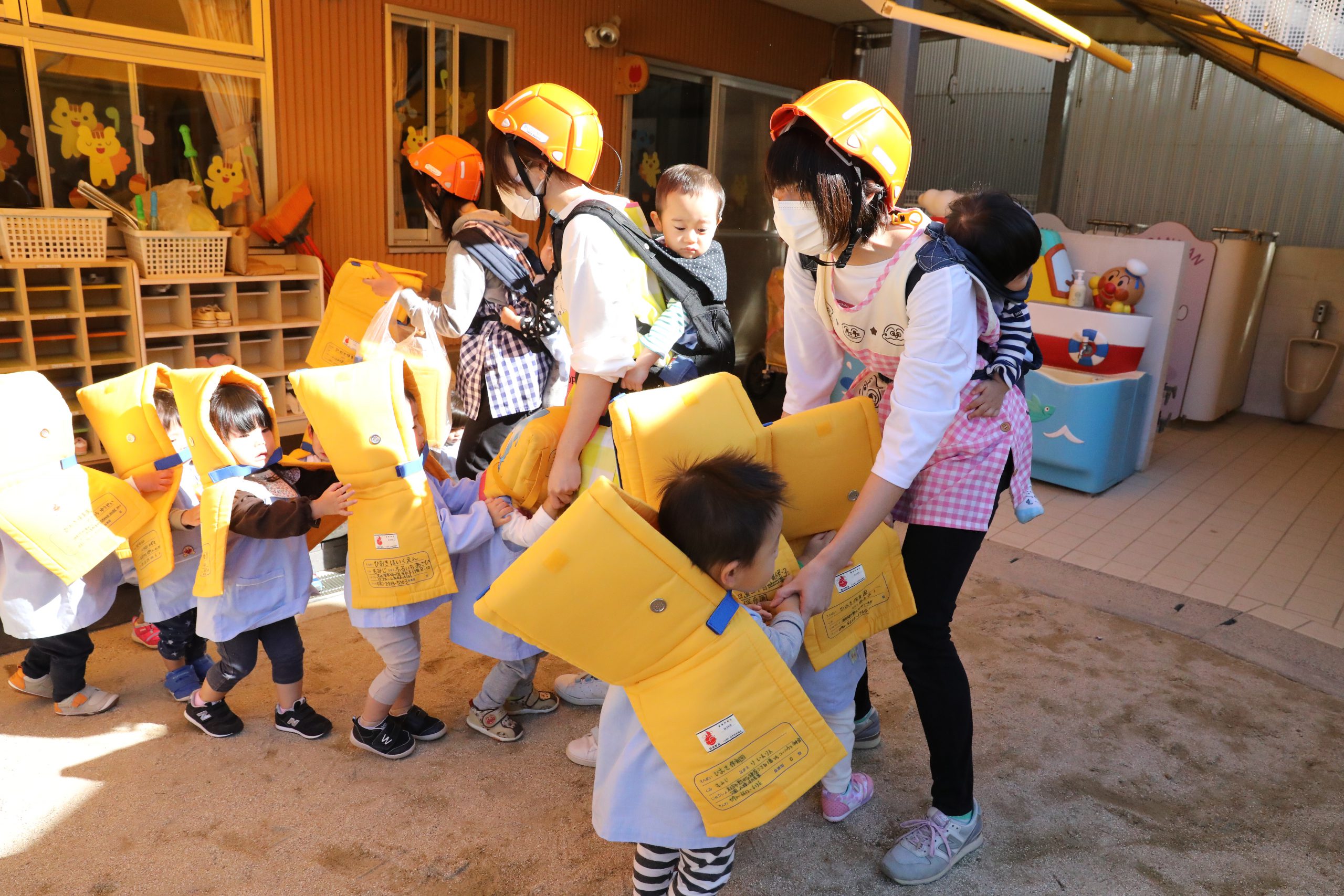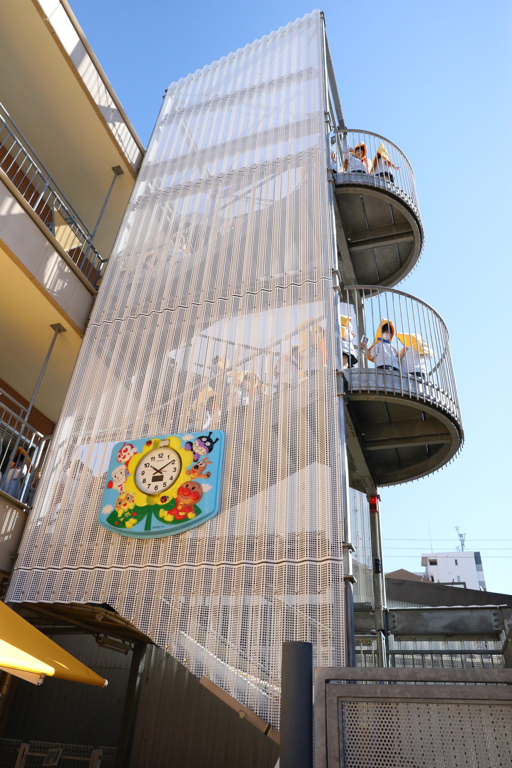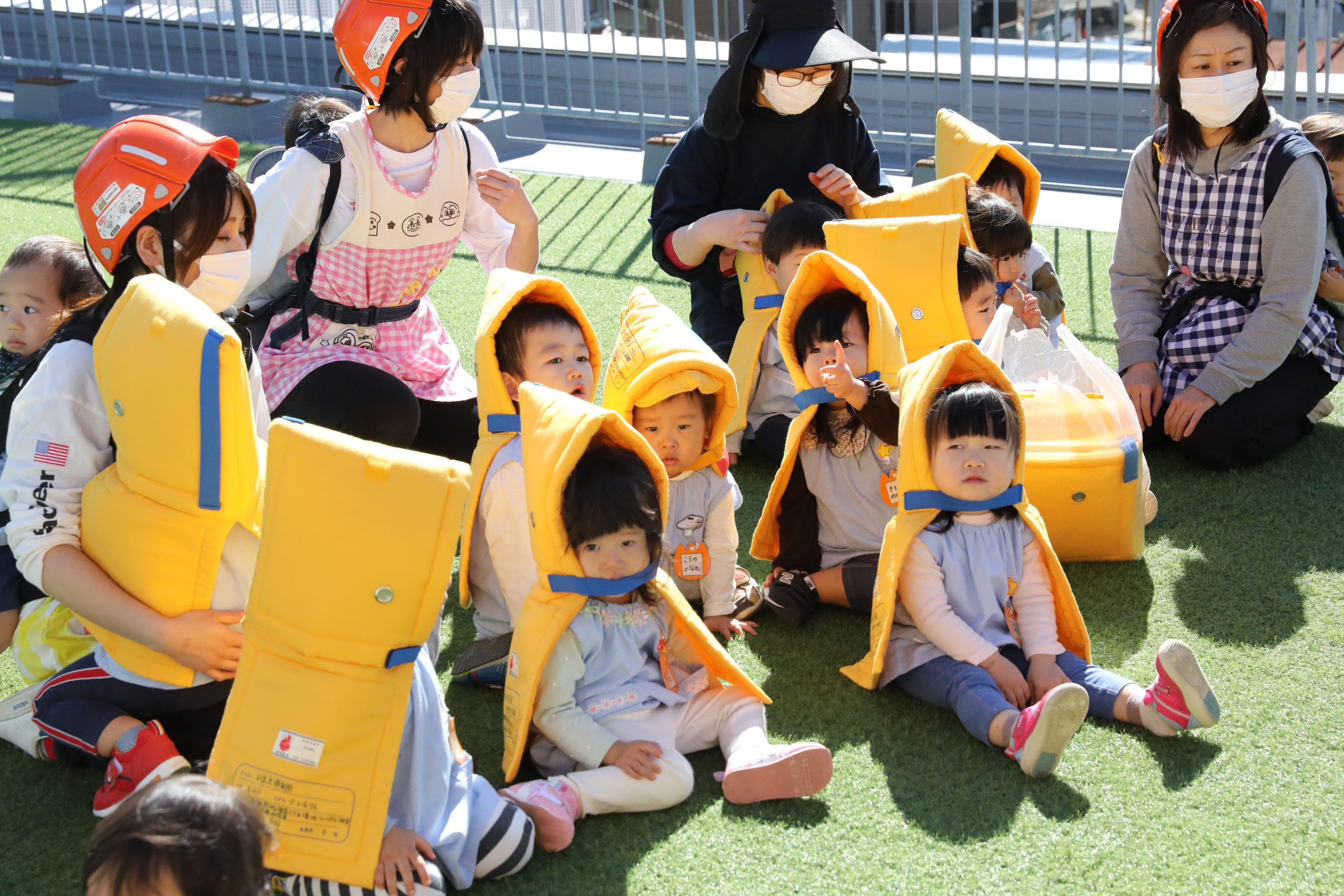 全園児が4階屋上へ避難し、乳児は保育士が抱っこひも等で抱きながらの避難です。こどもたちは使い慣れない非常階段での移動に驚いていましたが落ち着いて屋上まで避難していました。保育園の場所的には万が一津波が来ても時間に余裕があるため落ち着いての避難が大事です。